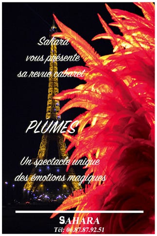 - Plumes est un voyage qui est prétexte à des escales amusantes et raconte l’univers des cabarets Parisiens et de ses numéros vedettes… Plumes C’est fou, c’est enchanteur, c’est sexy, c’est drôle, c’est envoûtant, c’est beau et souvent incroyable avec de l’interactivité et du plaisir brut.
