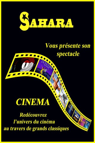 - SAHARA FAIT SON CINÉMA : Redécouvrez tous l’univers du cinéma, au travers de Grands classiques…! L’orchestre Sahara part à la découverte des héros du Septième Art : De Rocky à James Bond, de Disney à Taxi, les bandes originales de nos films favoris recèlent bien des trésors !
